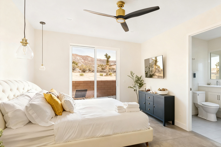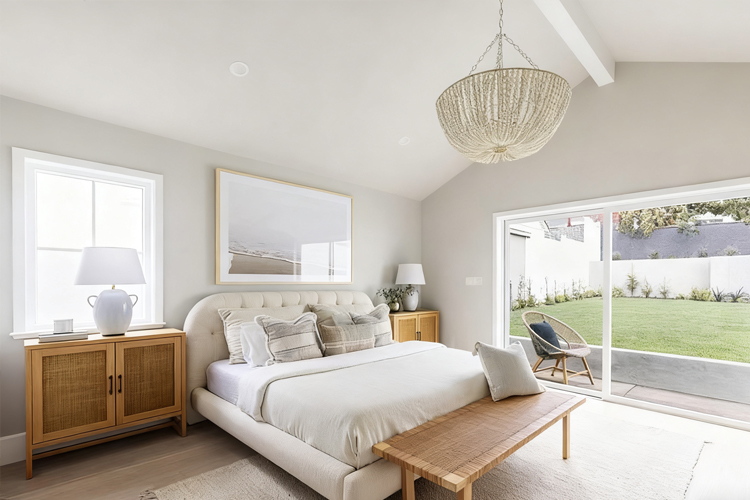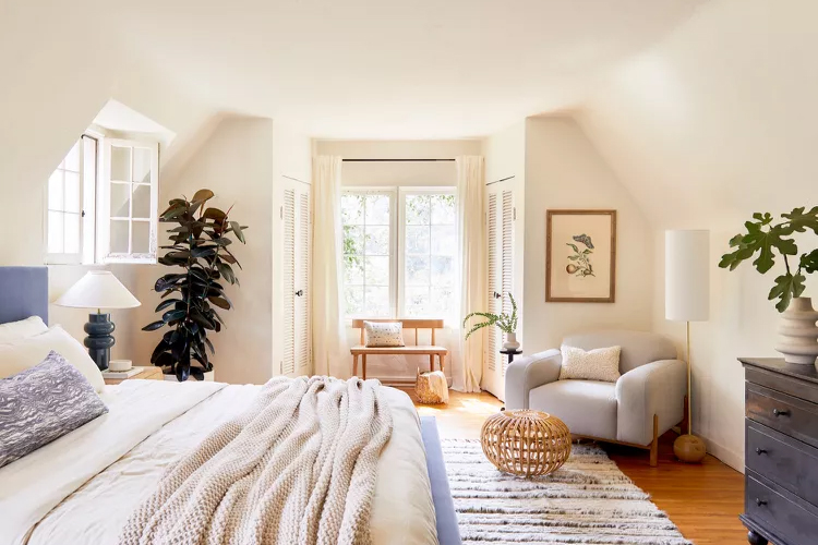 - Avoid sleeping under beams, soffits, and sloped ceilings. If unavoidable, hide architectural ceiling elements with fabric or paint.